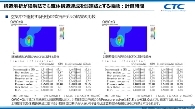 流体解析分野におけるS-ALEや非圧縮性流体(ICFD)の機能強化について説明しました。さらに Ansys Twin Builder との連携によるデジタルツイン構築として、LS-DYNAとAIや機械学習を組み合わせた最新技術について紹介しました。これにより、構造・流体・制御などの解析がより高速に計算可能となり、製品開発の効率化に大きく寄与することが示されました。
